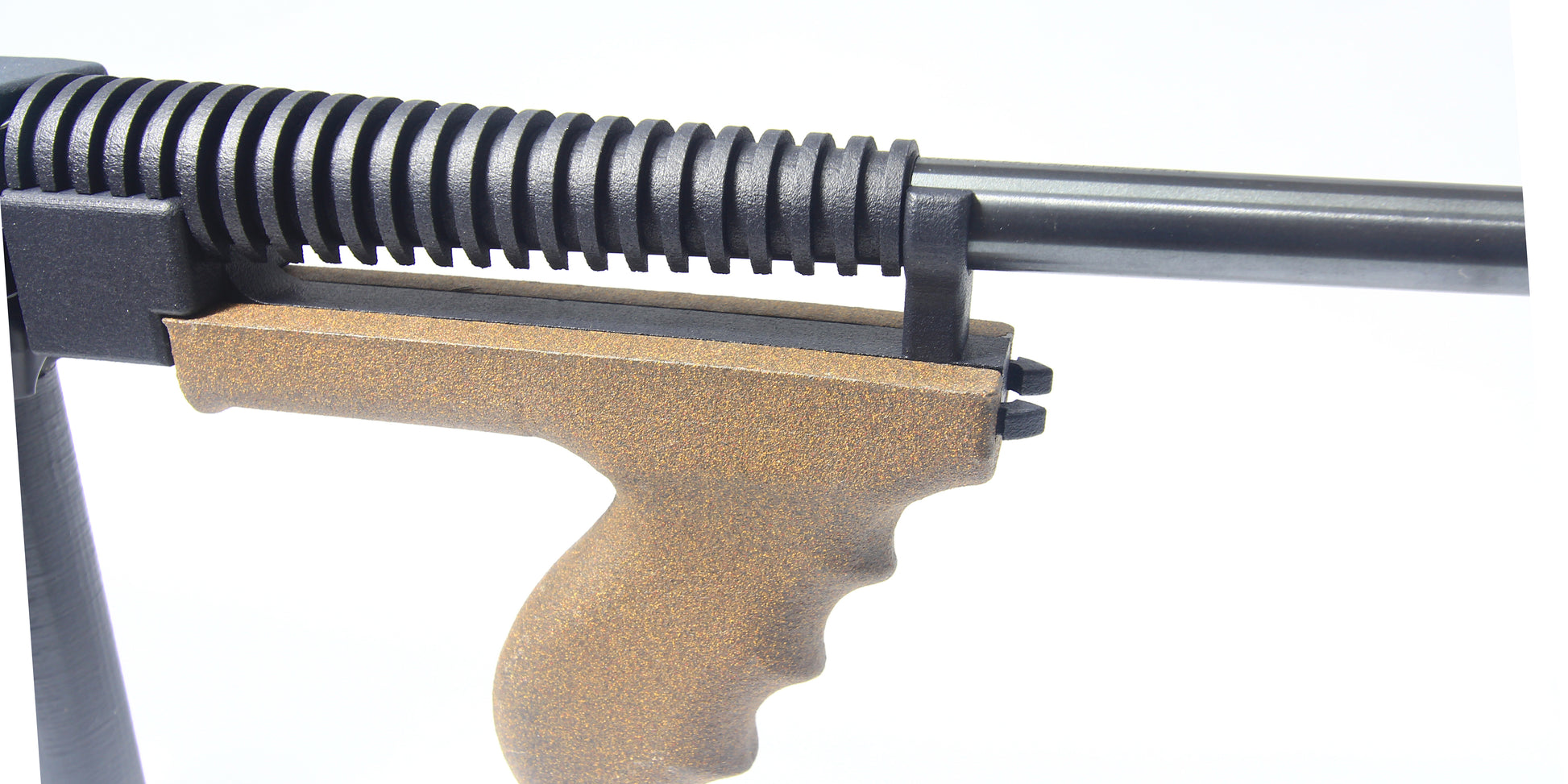 Black polymer fins to simulate a ribbed barrel. Slips over the barrel and used with the vertical grip assembly. It does not completely surround the barrel so it can be put on the barrel without removing the front sight.